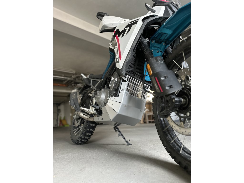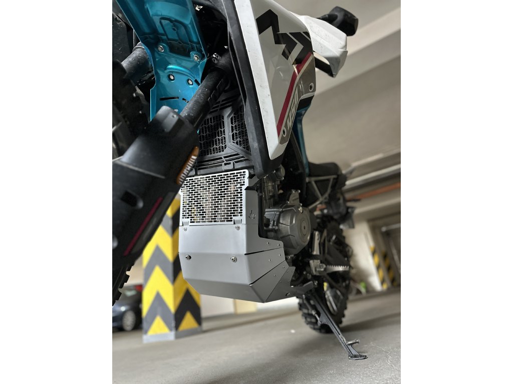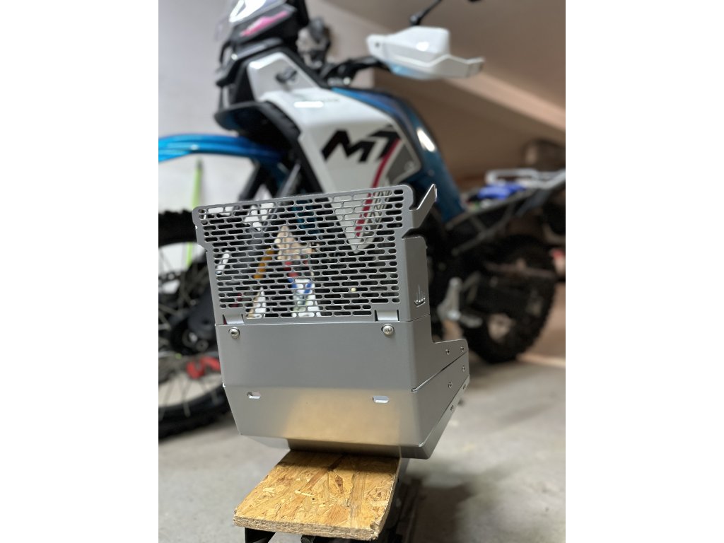 Speciálně navržený a zesílený kryt motoru je vypálený ze 4mm silného plátu hliníkové slitiny a vyztužený ocelovou pásovinou. Jednotlivé díly jsou spojeny nerezovými nýty, což výrazně zvyšuje celkovou pevnost a odolnost krytu. Nová konstrukce s mřížkou byla navržena s důrazem na maximální ochranu motocyklu v náročném terénu.